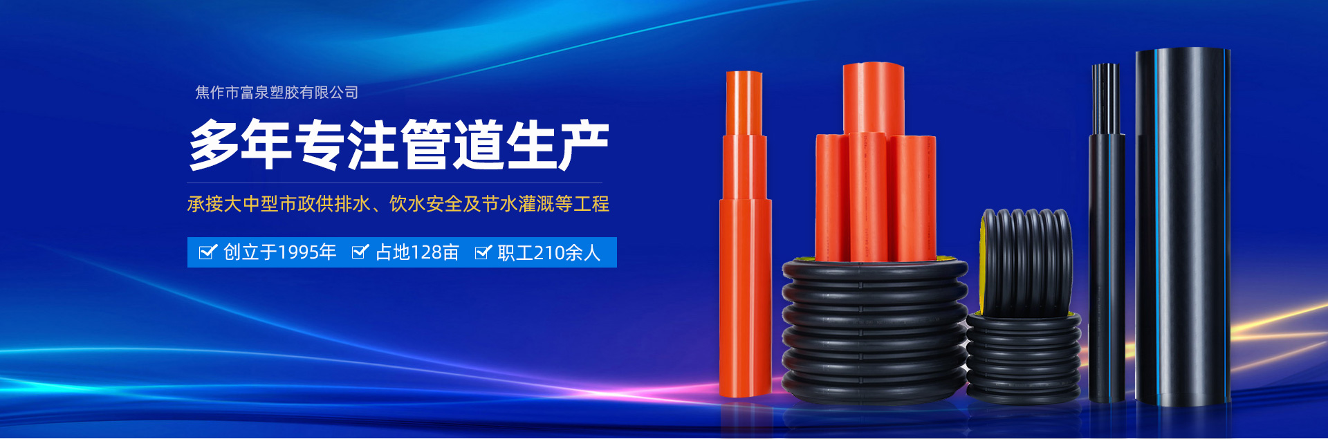 - 焦作市富泉塑胶有限公司,创立于1995年,是一家集研发、设计、生产、销售为一体的大型管材企业。公司位于太极故里、黄河之滨一一河南焦作温县。公司占地128亩,现有职工210余人,其中具有中技术职称的19人。生产、检验设备58台(套),包括PVC实壁管生产线11套、PE实壁管生产线12套、HDPE双壁波纹管生产线6套、PVC双壁波纹管生产线5套,检验设备14台(套)。主要产品有:Φ20mm-630mm、各种压力规格的PVCU、PVC-M、PE给水管材,PVC-U节水灌溉管材,HDPE燃气和矿用管材,DN200-800mm的HDPE、PVC双壁波纹管及各种喷灌、滴灌工程材料。承接大中型市政供排水、饮水安全及节水灌溉等工程?! 「蝗芙汗局厥硬返闹柿俊踩?、环保和节能,在同行业中率先完成了“新华节水产品认证”,全方面通过ISO9001:2008国际质量管理体系、IS014001:2004环境管理体系和OHSAS18001职业健康安全管理体系的一体化导入,并建立起规范的现代企业管理体系。公司以“质量”为先导,采用质量跟踪、多环节把关的方法,组建具有行业水准的企业技术检测中心,常年委托水利部节水灌溉设备检测中心、河南省产品质量监督检验院对产品跟踪检测,并由中国人民保险公司承保产品质量。公司连续多年被河南省水利厅确定为“安全饮水设备、节水灌溉设备”定点生产企业,并获得“中国名优产品”“质量、服务、信誉AAA企业”“河南省**产品”“河南省水利企业”“河南省守合同、重信用企业”等荣誉称号?! 「蝗芙汗炯岢帧坝没稀钡姆窭砟睿て谝岳?,全方面关注客户价值,不断提升服务水平。服务队伍常年为客户的产品设计、施工、安装提供合理的方案和全程细致、周到、**、快捷的技术服务。公司自成立以来,一直坚持以人为本的宗旨,塑造企业形象,并致力于新产品的开发,凭借雄厚的技术开发能力,先进的工艺制造流程,严格的质量管理保证体系,优良的售后服务网络,已成为河南省大的饮水、灌溉及排水管材设备制造商。产品畅销全国,而且还以公司雄厚的综合实力在业界中占据着重要的地位。